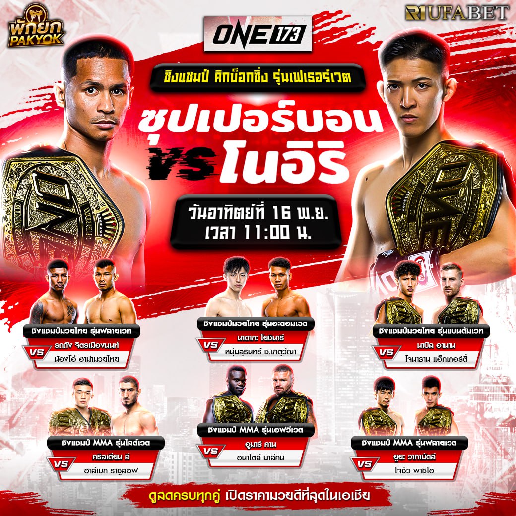 การแทงมวย ONE คือการเดิมพันผลของการแข่งขันมวย ONE Championship เป็นองค์กรศิลปะการต่อสู้แบบผสมผสาน (MMA) ที่ใหญ่ที่สุดในเอเชีย ซึ่งมีนักสู้จากทั่วโลกเข้าแข่งขัน การแข่งขัน ONE Championship ออกอากาศในกว่า 150 ประเทศ และมีผู้ชมมากกว่า 1 พันล้านคน