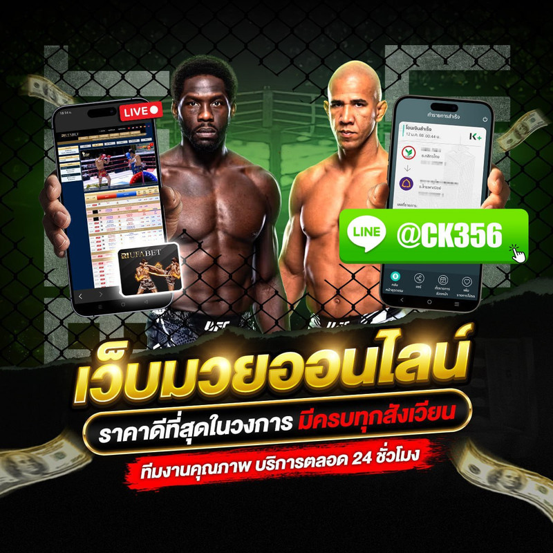 กดสมัครเว็บมวย กดที่สมัครเเอดไลน์ @CK356 สเเกนคิวอาร์โค้ด เพิ่มเพื่อน กดสมัครสมาชิกใหม่ เเละกรอกข้อมูล รอเจ้าหน้าเเจ้งเลขบัญชี ทำการโอนเงินเข้าบัญชีที่ส่งให้พร้อมเเจ้งสลิป รอรับ ยูสเซอร์เเละรหัสผ่าน เข้าสู่หน้าเว็บไซต์ @CK356 กดเลือกเมนู มวยสเต็ป ทำการโยกเครดิตเข้าห้องเกม กดเริ่มเดิมพัน เลือกรูปเเบบการเเทง ราคาน้ำ ฝั่งนักชก วางจำนวนเงิน เเละรอลุ้นผลกำไรได้เลย กติกาการเล่นมวย เลือกเเทงมวยออนไลน์ เลือกเว็บตรง @CK356การที่เราจะเข้าไปเดิมพันออนไลน์สักเว็บ เราต้องมั่นใจก่อนว่าเว็บมีความน่าเชื่อถือขนาดไหน โดยสามารถเช็คได้จากการค้นหาชื่อเว็บจากใน Google เเละหากเป็นเว็บตรงจะมีหน้าเว็บที่ดูน่าเชื่อถือ จึงจะไม่ใช่เว็บเอเย่นต์ การเข้าเล่นมวยจะต้องทราบเรื่องของกติกาเล่นมวยของแต่ละเว็บไซต์ให้ดี เพื่อให้ท่านไม่เสียเปรียบเมื่อเดิมพัน โดย UFA ได้ออกกำหนดอย่างชัดเจน และตรงไปตรงมาเพื่อให้ไม่เกิดความเสียเปรียบต่อนักพนัน ซึ่งถ้าหากคุณสนใจที่จะลอง แทงมวย สามารถเริ่มต้นได้ง่ายๆ เพียงแค่แอดไลน์หาเจ้าหน้าที่ของเรา เเละท่านจะได้รับประสบการณ์ที่ดีเเน่นอน